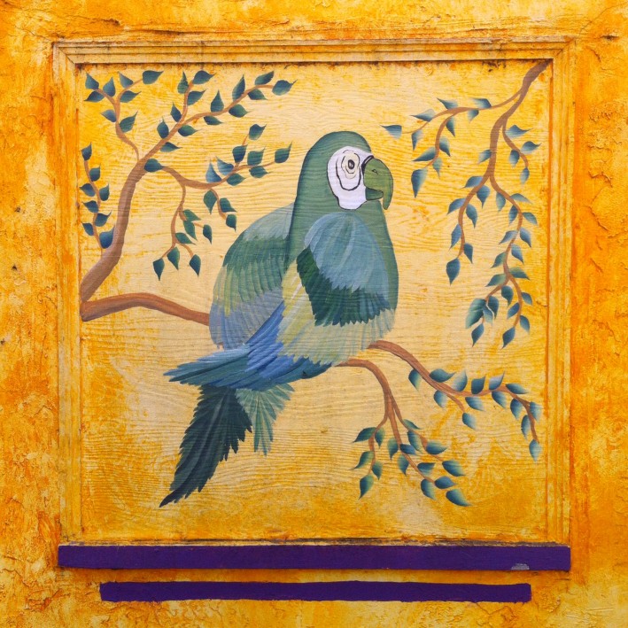 A parrot says hello outside of our lunch spot today.