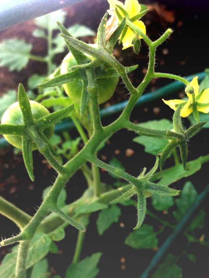 My balcony is pretty shaded, but I have one corner that gets a decent amount if sun. So I thought it was at least worth attempting a few veggie plants. So far so good on the cherry tomato front!