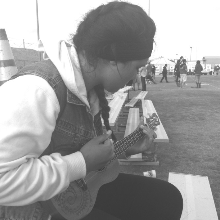 You wouldn’t think playing the ukelele would be so interesting, but at least three people came up and wanted talk ukes with the sister today.